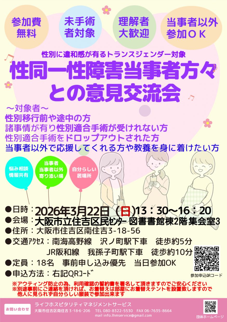梅田会場 天王寺会場にはない 性別違和当事者で性移行前や途中の方 性同一性障害で未手術の方々との交流に参加してみませんか?
