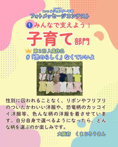 大阪男女いきいき財団では、ジェンダー平等実現に向けたフォトメッセージコンテストを今年度も開催します。