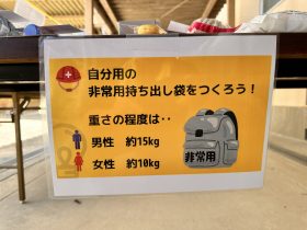 また、非常用持出袋に入れるグッズの見本が並べてありましたが、ほとんど100円均一ショップで用意できるものだそうです。