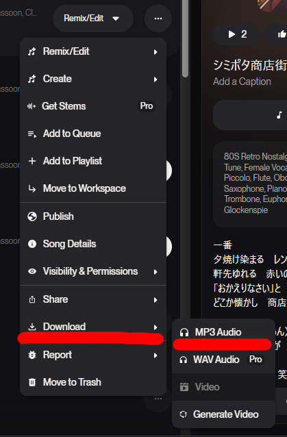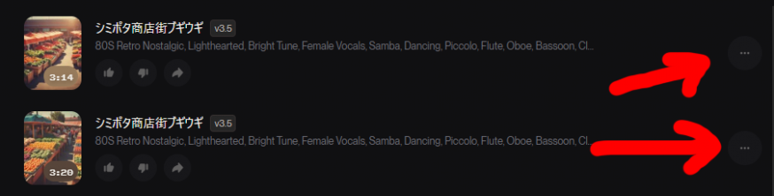 いいのができたら楽曲の右側にある「・・・」をクリックしましょう!