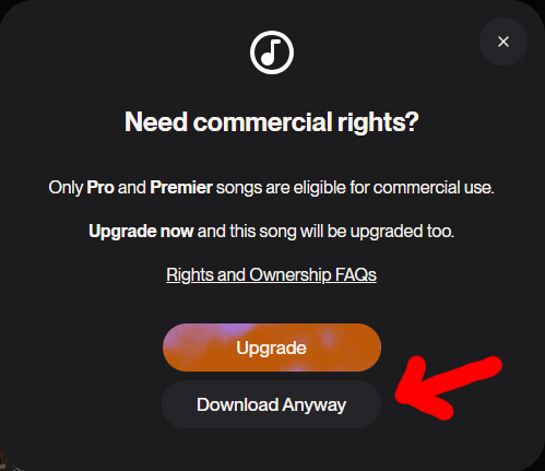 するとこの様な画面が開くので下の「Download Anyway」をクリックすると楽曲をダウンロードすることができます!