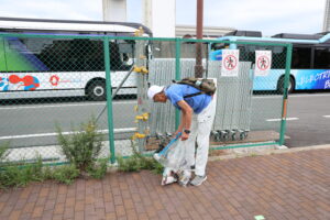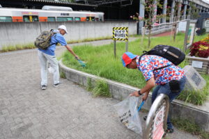 今回は、閉幕まであと3週間となった大阪・関西万博へ向かう大勢の人たちが利用する、桜島駅シャトルバス乗り場周辺のゴミ拾いをしました。