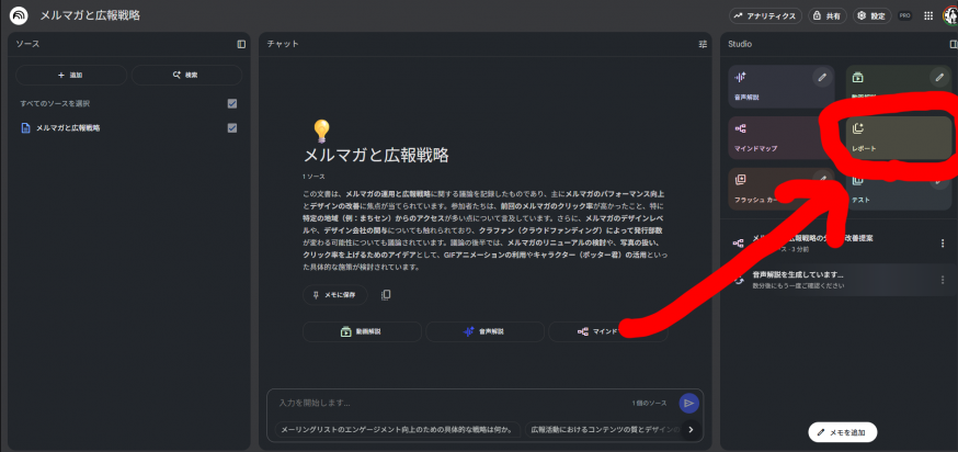 次は、そのデータ化したメモを『NotebookLM』に読み込ませて議事録を作成していきます。
