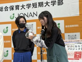 大阪総合保育大学短期大学部(旧大阪城南女子短期大学)の学生と企業のコラボで商品を開発する「好きになろうプロジェクト」の発表会も行われていました。
