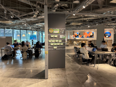 今回の活動視察では、「認定NPO法人CLACK」さんが実施するプログラミング学習およびキャリア支援の教室「Tech Runway+」を訪問しました。「Tech Runway+」は、都島区にある「QUINT BRIDGE」で開催されています。教室では、高校生がプログラミングに取り組んでおり、最初の15分間は社会人エンジニアとともにその日の目標を設定し、その後は目標に向けて各自で作業を進めていくかたちで、メリハリをもってプログラミングに取り組めるよう、運営が行われています。「Tech Runway+」は、年間で3ターム制を実施しており、視察時点では第2ターム目の約3分の2が終了し、高校生たちは成果発表会に向けた準備を進められていました。発表会では、各自が制作した成果物のこだわりや苦労した点、プログラミングを通じて学んだこと等を発表します。また、制作した成果物は、本人の意思で、実際にWebサイトへ公開されることもあります。