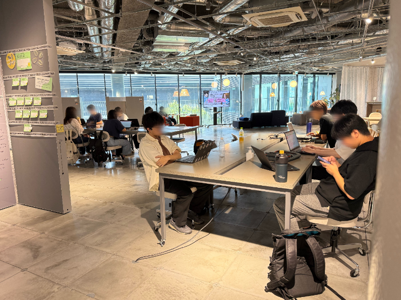 今回の活動視察では、「認定NPO法人CLACK」さんが実施するプログラミング学習およびキャリア支援の教室「Tech Runway+」を訪問しました。「Tech Runway+」は、都島区にある「QUINT BRIDGE」で開催されています。教室では、高校生がプログラミングに取り組んでおり、最初の15分間は社会人エンジニアとともにその日の目標を設定し、その後は目標に向けて各自で作業を進めていくかたちで、メリハリをもってプログラミングに取り組めるよう、運営が行われています。「Tech Runway+」は、年間で3ターム制を実施しており、視察時点では第2ターム目の約3分の2が終了し、高校生たちは成果発表会に向けた準備を進められていました。発表会では、各自が制作した成果物のこだわりや苦労した点、プログラミングを通じて学んだこと等を発表します。また、制作した成果物は、本人の意思で、実際にWebサイトへ公開されることもあります。