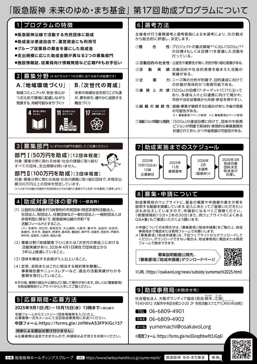 「阪急阪神 未来のゆめ・まち基金」第17回助成プログラム